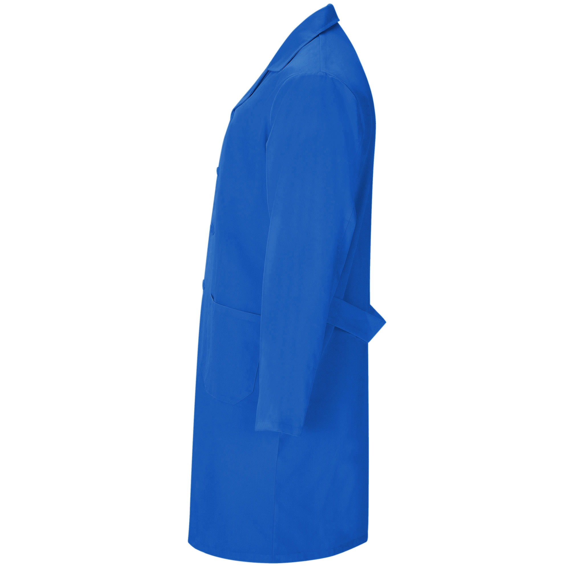 Bata unisex de laboratorio con solapa. Apertura frontal con botones de plástico al tono. Dos bolsillos plaqué frontales. Bolsillo plaqué en pecho izquierdo. Banda trasera a la altura de la cintura. Etiquetado Roly WRK exterior. Composición: 65 % poliéster / 35% algodón. Gramaje: sarga de 195 g/m².