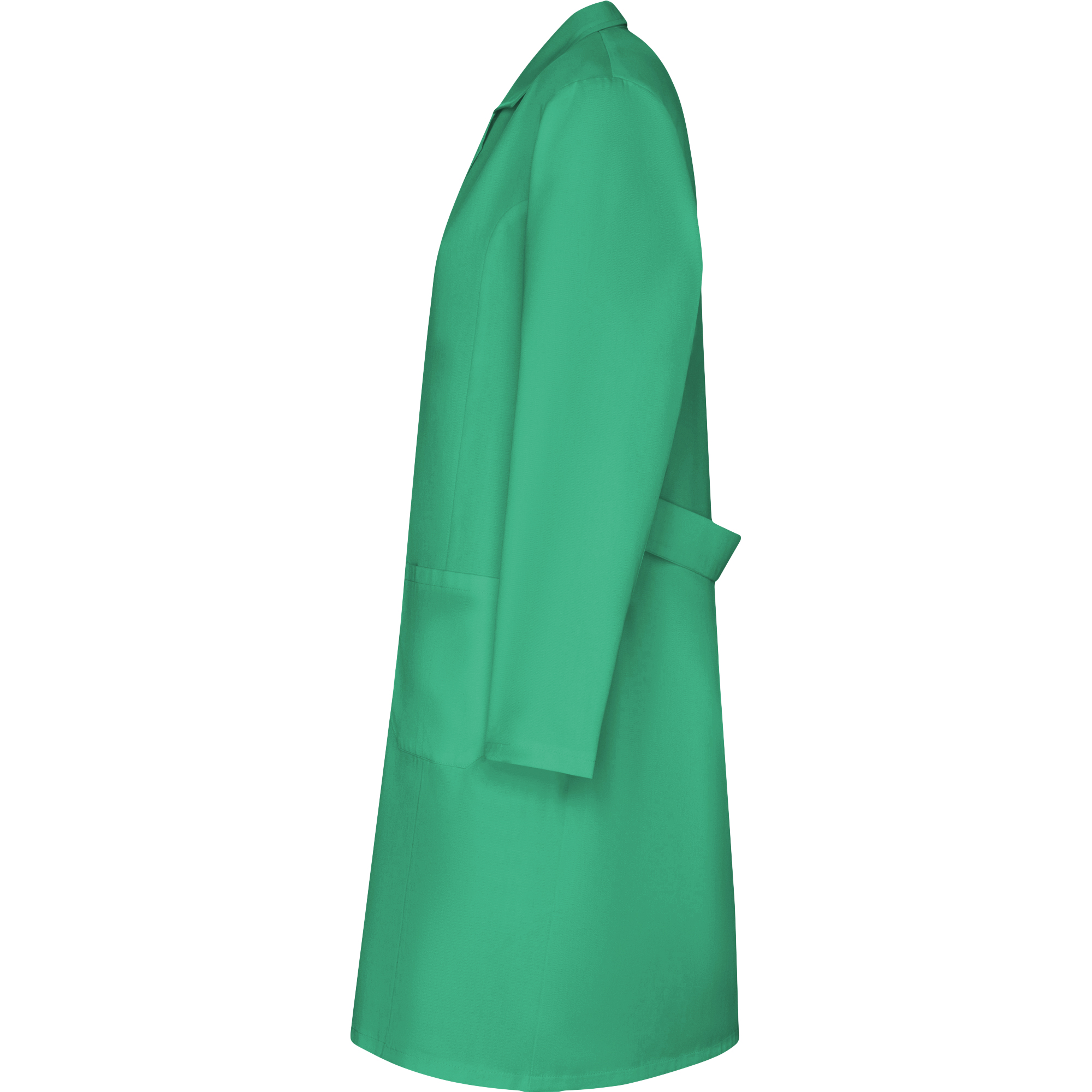 Bata de laboratorio con solapa de mujer. Apertura frontal con botones de plástico al tono. Dos bolsillos plaqué frontales. Bolsillo plaqué en pecho izquierdo. Costadillos delanteros. Banda trasera a la altura de la cintura. Etiquetado Roly WRK exterior. Composición: 65% poliéster / 35% algodón. Gramaje: sarga de 195 g/m².