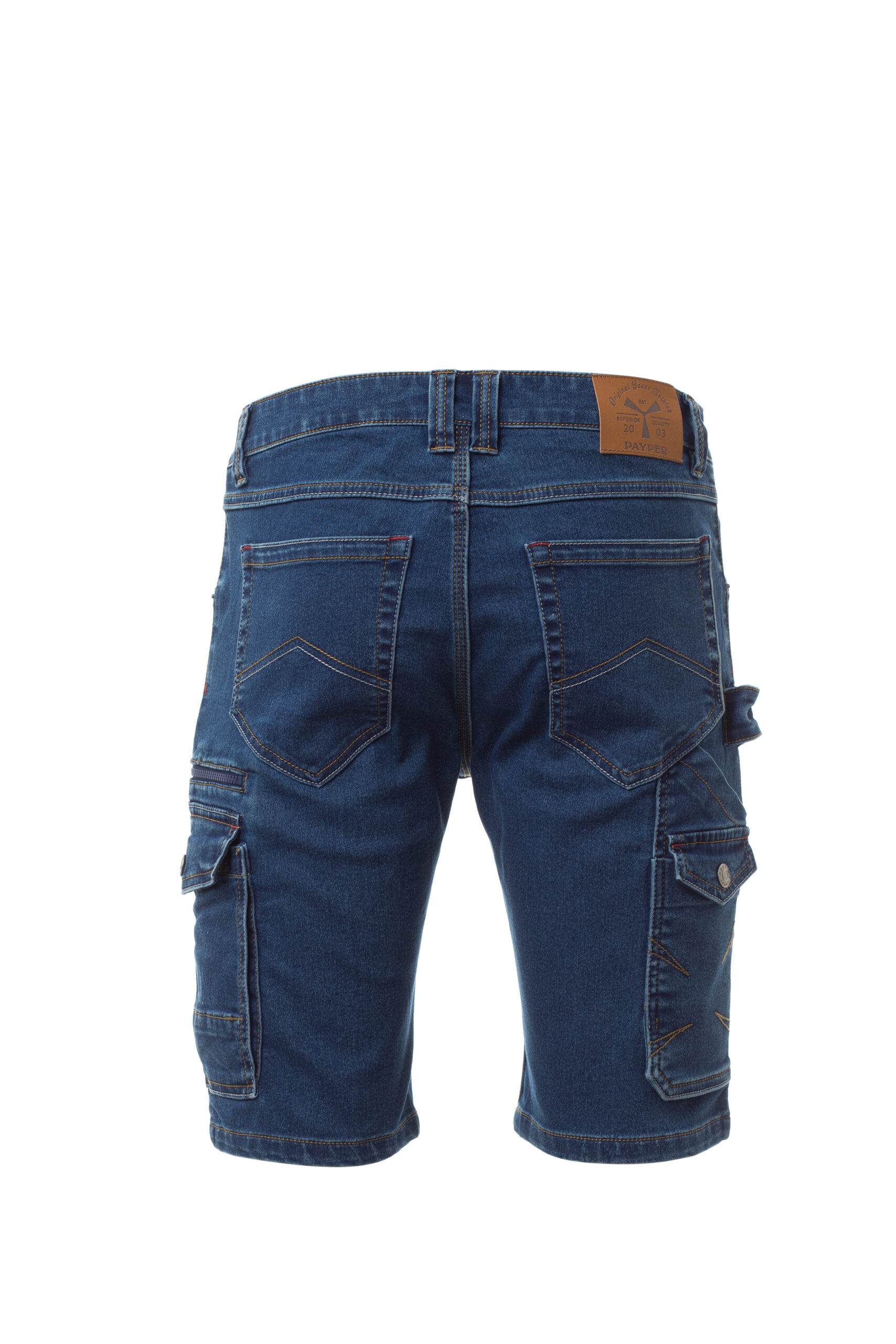 Bermudas multibolsillos para hombre de corte vaquero con cinco bolsillos, cierre con cremallera de metal y botón, trabillas en la cintura. Dos bolsillos redondeados, 1 bolsillo pequeño para bolígrafos y cúter, 1 bolsillo grande LOCK SYSTEM con refuerzo interno, 1 bolsillo con cremallera, 1 soporte para metro, 1 soporte para smartphone, 1 soporte para martillo, 2 bolsillos traseros de parche. Tratamiento de lavado a la piedra, efecto desgastado y desteñido. Pernera recta, costuras con hilo grueso de contraste y con triple aguja en el interior de la pierna. Peso del tejido: 9 oz/yd². Composición: 72 % Algodón + 26 % Poliéster + 2 % Elastano. Gramaje: 320 GR/MQ.