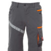 Cierre central con cremallera y botón. Cinturilla elástica. Refuerzo de tejido trasero. Doble costura de seguridad. Anilla de plástico en una de las trabillas de la cintura. Bolsillos flotantes, con diferentes compartimentos, que se pueden introducir dentro de los bolsillos franceses. Diez bolsillos