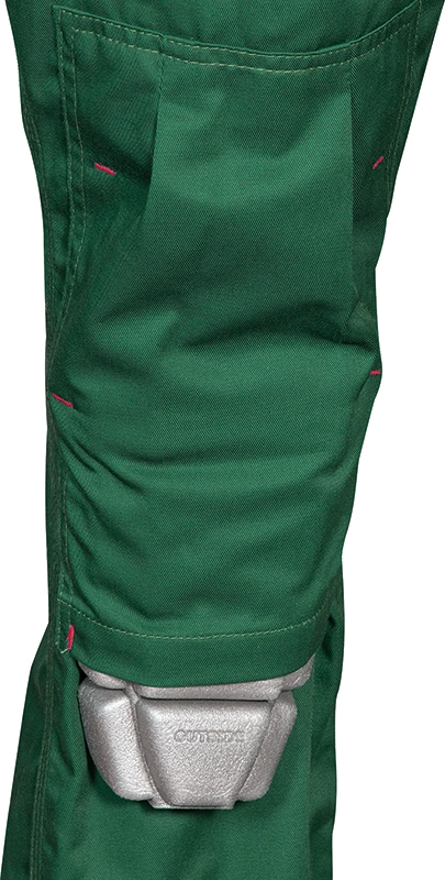 2 bolsillos delanteros con velcro, amplios bolsillos delanteros, abertura central con cremallera, cintura elástica, inserto portabolígrafos, pasador portamartillo, puños regulables, bolsillo porta metro, bolsillo trasero con velcro, bolsillo para rodilleras con posición ajustable. Composición: 100% algodón. Gramaje: 245 g/m².