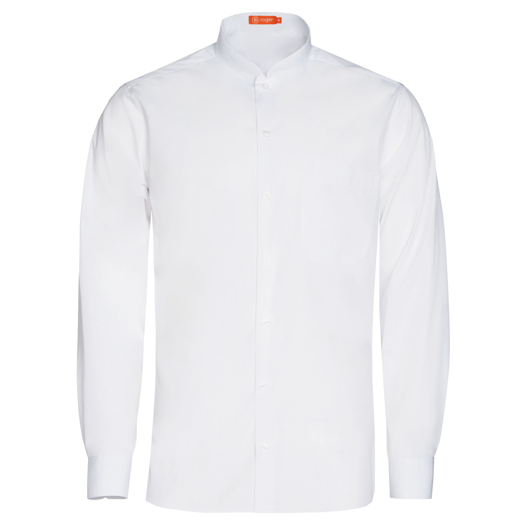 Camisa hombre manga larga. Corte Regular Fit. Cuello Mao. Bolsillo en frontal izquierdo.