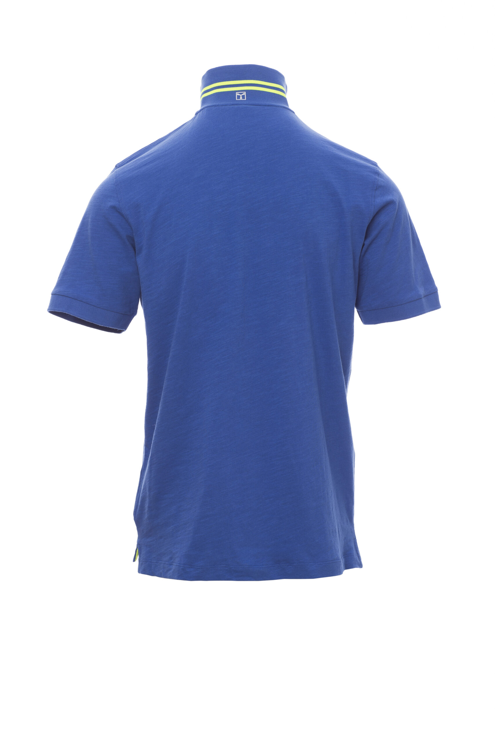 Camiseta polo de manga corta para hombre con 3 botones efecto nácar a juego, cuello con cintas rayas de contraste y rayas fluorescentes en la parte inferior, cuello y extremo de las mangas elásticos, manga recta con inserción, ventilaciones laterales y pespunte en cuello oculto con cinta fluorescente, etiqueta de transferencia. Composición: 100 % Algodón. Gramaje: 160 GR/MQ