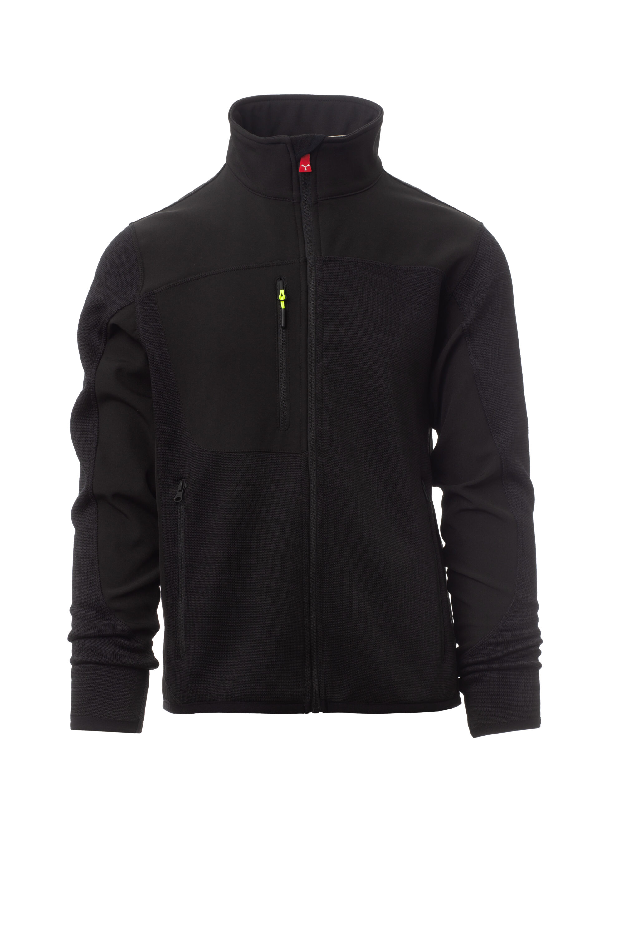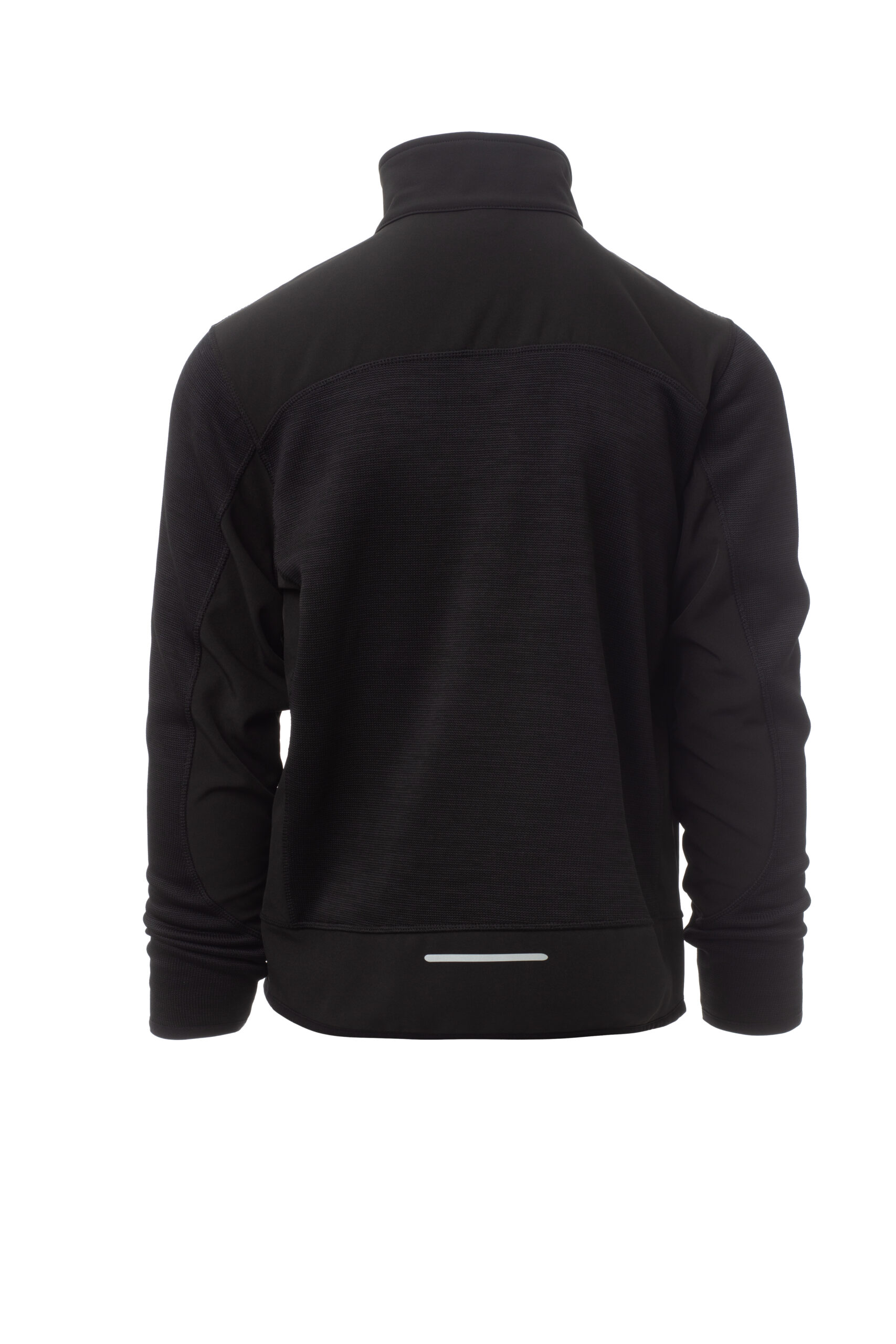 Chaqueta técnica con inserciones en soft-shell en contraste, cierre con cremallera con cinta, con cursor con sistema de bloqueo semiautomático y tirador personalizado. Ribete rematado en puños y bajo. Dos bolsillos laterales con cremallera, un bolsillo contorneado a la altura del pecho con cremallera. Detalle reflectante en la espalda.