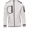 Chaqueta técnica con inserciones en soft-shell negro, bicolor, cremallera SBS larga con cinta, capucha con doble costura, fino ribeteado en puños y dobladillo, dos bolsillos laterales con cremallera, un bolsillo a la altura del pecho. Composición: 100 % Poliéster. Gramaje: 380 GR/MQ