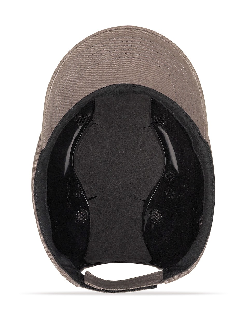 Gorra antigolpes tipo béisbol 100% algodón. Casquete interior en ABS (plástico muy resistente al impacto y con gran capacidad de absorción de energía incluso a bajas temperaturas) con almohadilla. Ventilación lateral. Talla única regulable mediante velcro (de 54 a 59 cms).