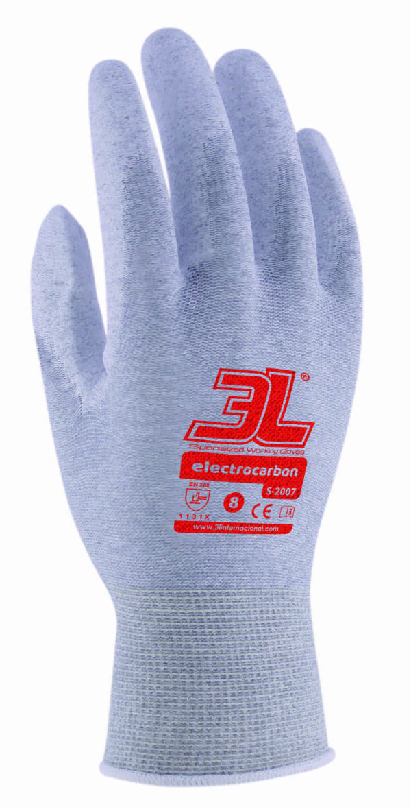 Guante antiestático con soporte de nylon/carbono y recubrimiento PU. Excelente resistencia a la abrasión. Diseño ergonómico. Alta dexteridad. Dorso transpirable. Propiedad de descargar la electricidad estática (EN 1149-3:2004). Certificado contra la norma EN16350:2014 (Guantes de protección. Propiedades electrostáticas). Normativa: EN 420, EN 388, EN 16350. Embalaje: 1 par/bolsa, 12 pares/bolsón, 120 pares/caja. Precio caja completa. Tallas: 6-7-8-9-10.