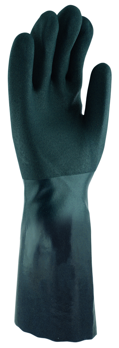Soporte de algodón 100% tipo Jersey. Alta resistencia a una gran gama de productos químicos, incluyendo hidrocarburos y algunos solventes. Acabado rugoso antideslizante. Buen agarre en seco y húmedo. Normativa: EN 420, EN 388, EN ISO 374-1. Embalaje: 1 par/bolsa, 12 pares/bolsón, 72 pares/caja. Precio caja completa. Talla: 10