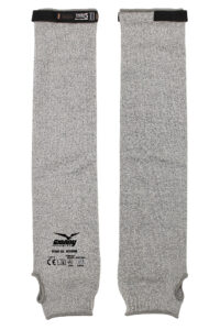 Manguito de protección en SCY/HPPF/ELASTANO 13G, de 60 cm de longitud, cierre con velcro, perforado en el pulgar. – Características: recio, muy resistente – Puntos fuertes: resistente al corte y al calor de contacto (100 °C máx.) – Ámbitos de uso: industria del automóvil, mantenimiento en general, industria del vidrio y de la cerámica. Unidad mínima de venta: 5 pares (5 manguitos derechos y 5 manguitos izquierdos empaquetados individualmente). Precio de catálogo: el par (2 piezas: 1 manguito derecho y 1 manguito izquierdo). Embalaje: 5/60 (Venta por múltiplos)