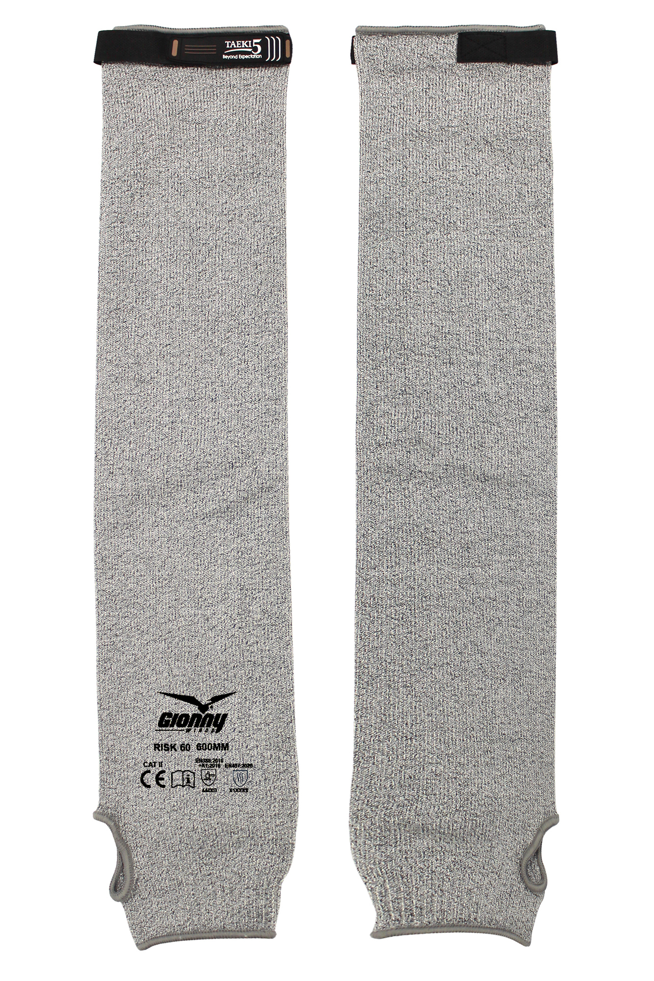 Manguito de protección en SCY/HPPF/ELASTANO 13G, de 60 cm de longitud, cierre con velcro, perforado en el pulgar. – Características: recio, muy resistente – Puntos fuertes: resistente al corte y al calor de contacto (100 °C máx.) – Ámbitos de uso: industria del automóvil, mantenimiento en general, industria del vidrio y de la cerámica. Unidad mínima de venta: 5 pares (5 manguitos derechos y 5 manguitos izquierdos empaquetados individualmente). Precio de catálogo: el par (2 piezas: 1 manguito derecho y 1 manguito izquierdo). Embalaje: 5/60 (Venta por múltiplos).