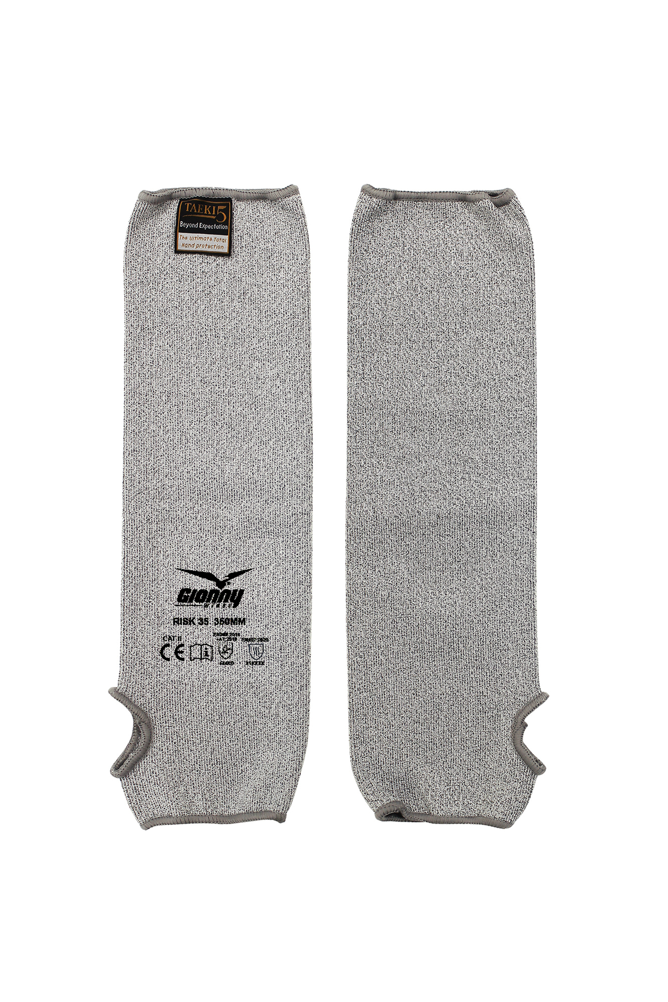 Manguito de protección en SCY/HPPF/ELASTANO 13G, de 35 cm de longitud, perforado en el pulgar. – Características: recio, muy resistente – Puntos fuertes: resistente al corte y al calor de contacto (100 °C máx.) – Ámbitos de uso: industria del automóvil, mantenimiento en general, industria del vidrio y de la cerámica. Unidad mínima de venta: 5 pares (5 manguitos derechos y 5 manguitos izquierdos empaquetados individualmente). Precio de catálogo: el par (2 piezas: 1 manguito derecho y 1 manguito izquierdo). Embalaje: 5/60 (Venta por múltiplos). Talla: Única.