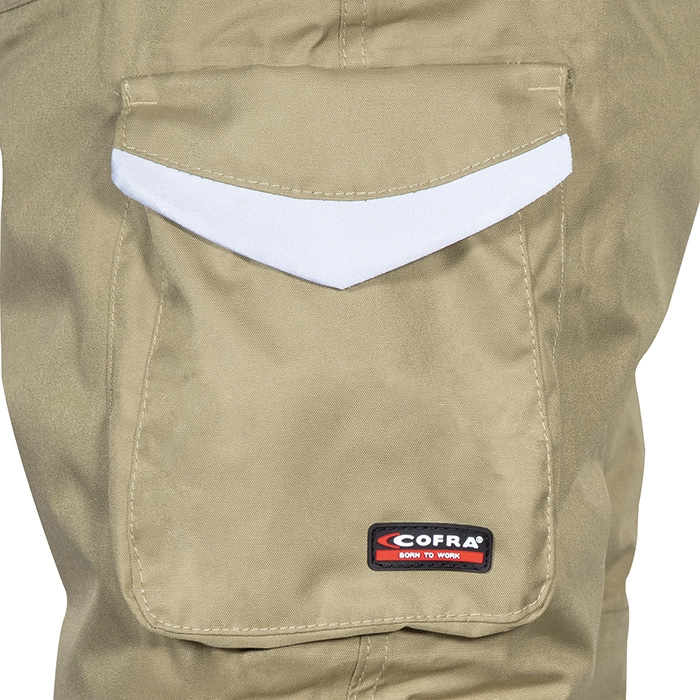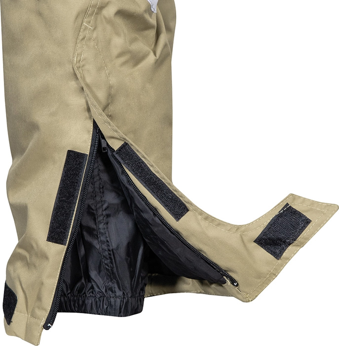 Amplio bolsillo trasero con cierre de cremallera, abertura con cierre de cremallera en la parte inferior y polainas impermeables, doble bolsillo trasero con tapeta, bajo de la prenda pantalón reforzado, insertos reflectantes, corte ergonómico de las piernas y rodillas, bolsillo lateral derecho, termosellado, parches de refuerzo en las rodillas, cintura ajustable. Composición: 100% poliéster encerado poliuretano, ACOLCHADO: 100% poliéster, FORRO: 100% poliéster. Gramaje: 200 g/m²