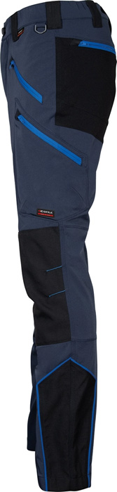 2 amplios bolsillos delanteros con cierre de cremallera, 2 bolsillos laterales con cierre de cremallera, 2 bolsillos traseros con cierre de cremallera, D-Ring, cintura elástica, parte trasera de la cintura en relieve, corte ergonómico de las piernas y rodillas, tejido antiabrasión en zonas de mayor estrés, tejido elástico. Composición: 94% nylon – 6% elastán + insertos resistentes a la abrasión en 100% nylon. Gramaje: 250 g/m². Tallas: Desde talla 38 hasta talla 58.
