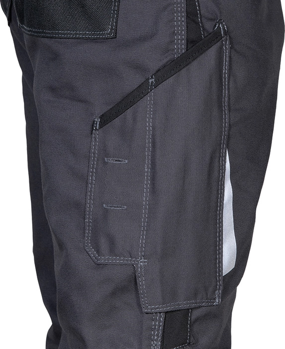 2 amplios bolsillos delanteros, tiro reforzado, doble bolsillo trasero con tapeta, cintura elástica, insertos resistentes a la abrasión en el fondo de la pierna, insertos resistentes a la abrasión de los bolsillos posteriores, insertos resistentes a la abrasión bolsillos anteriores, insertos reflectantes 3M™ SCOTCHLITE™ Reflective Material – 8725 Silver Fabric, pasador portamartillo, corte ergonómico de las piernas y rodillas, bolsillo lateral, bolsillo portamóvil, bolsillo porta metro, tejido elástico, cremallera YKK®. Composición: 64% algodón – 34% poliéster – 2% elastán + insertos resistentes a la abrasión en 100% nylon. Gramaje: 250 g/m². Tallas: Desde talla 38 hasta talla 58.