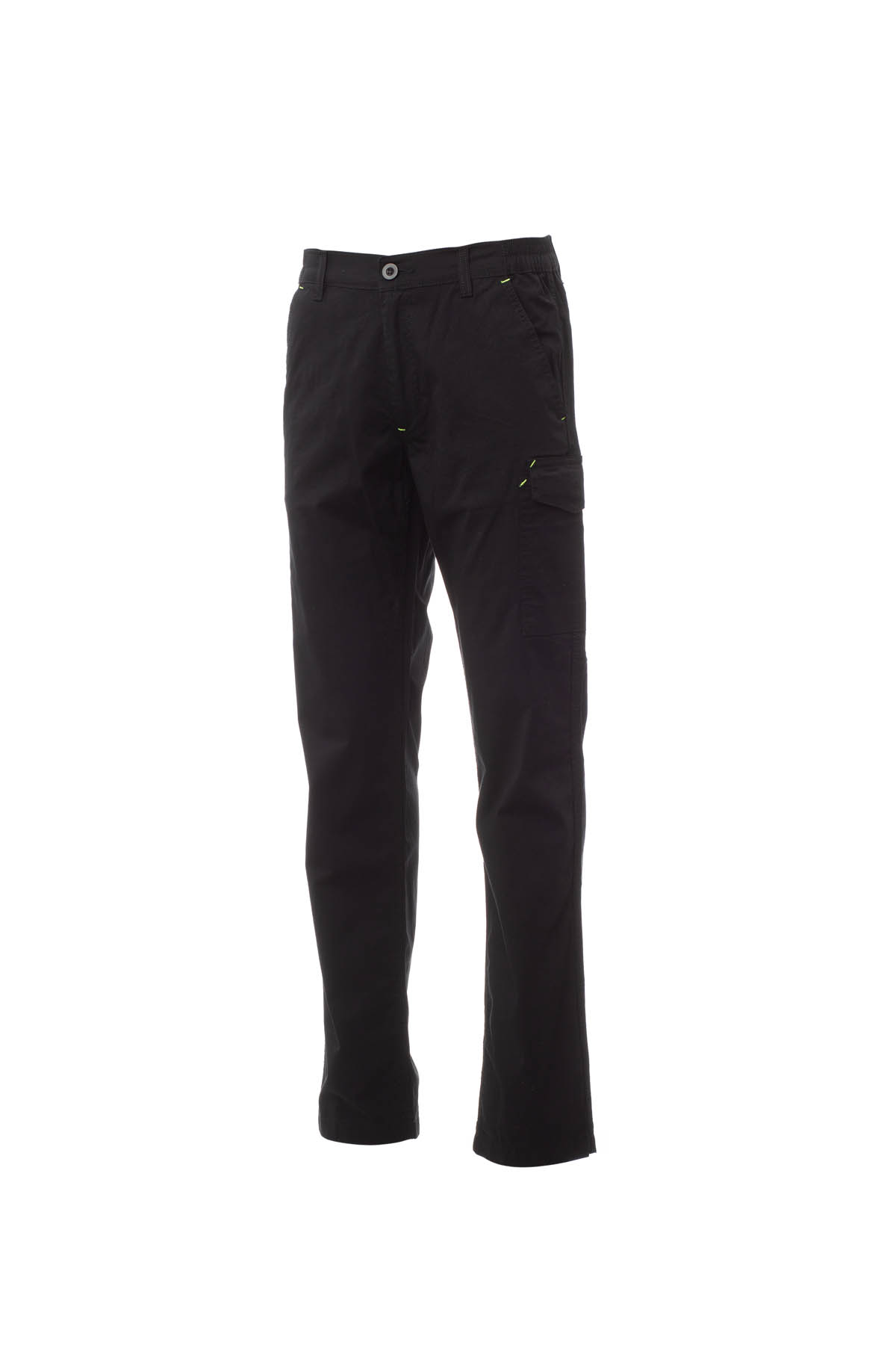 Pantalón de tejido ripstop elástico, ligero, con trabillas y elástico en la cintura, cierre con cremallera y botón en la cintura. Bolsillos delanteros de corte clásico, con bolsillo pequeño portamonedas en el bolsillo derecho (con la prenda puesta) y soporte para metro lateral. Bolsillo lateral izquierdo con tapeta de cierre LOCK SYSTEM. Dos bolsillos posteriores, de los cuales uno con tapeta y velcro. Costuras de triple aguja.