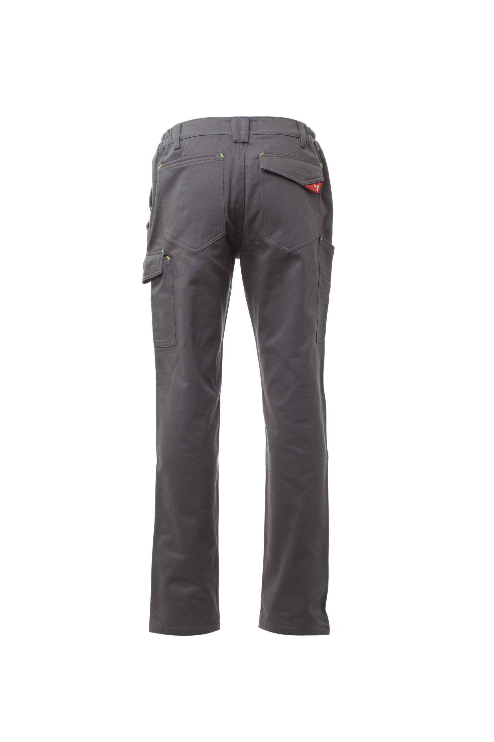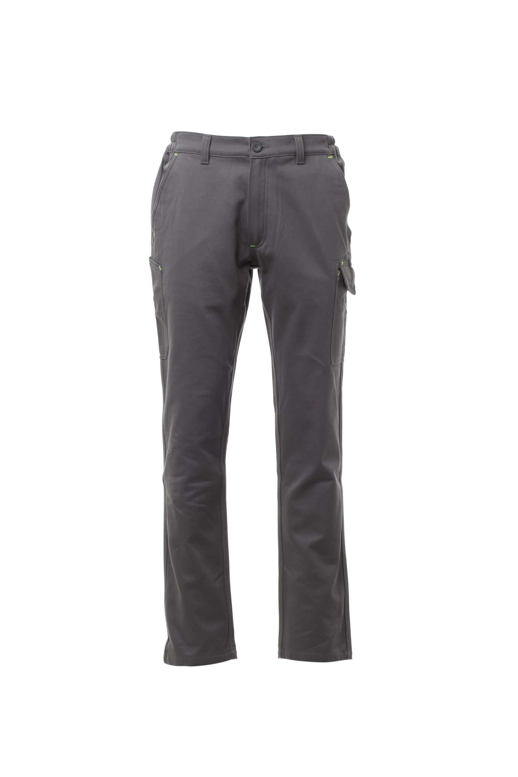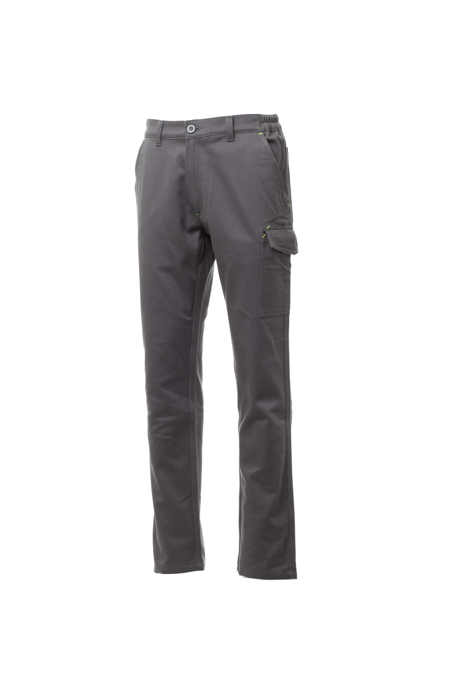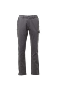 Pantalón de invierno con trabillas y elástico en la cintura, cierre con cremallera y botón. Dos bolsillos delanteros de corte clásico, bolsillo pequeño portamonedas, soporte para metro lateral derecho, bolsillo lateral izquierdo con tapeta de cierre LOCK SYSTEM, dos bolsillos posteriores, uno con tapeta y velcro. Costuras de triple aguja. Composición: 100 % Algodón. Gramaje: 350 GR/MQ