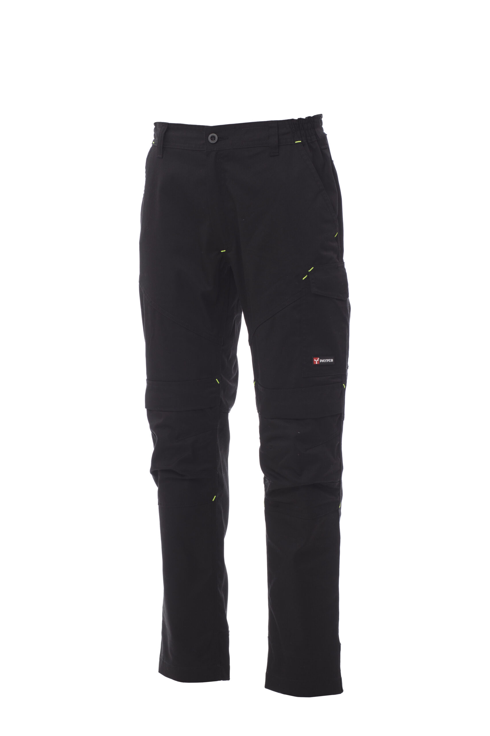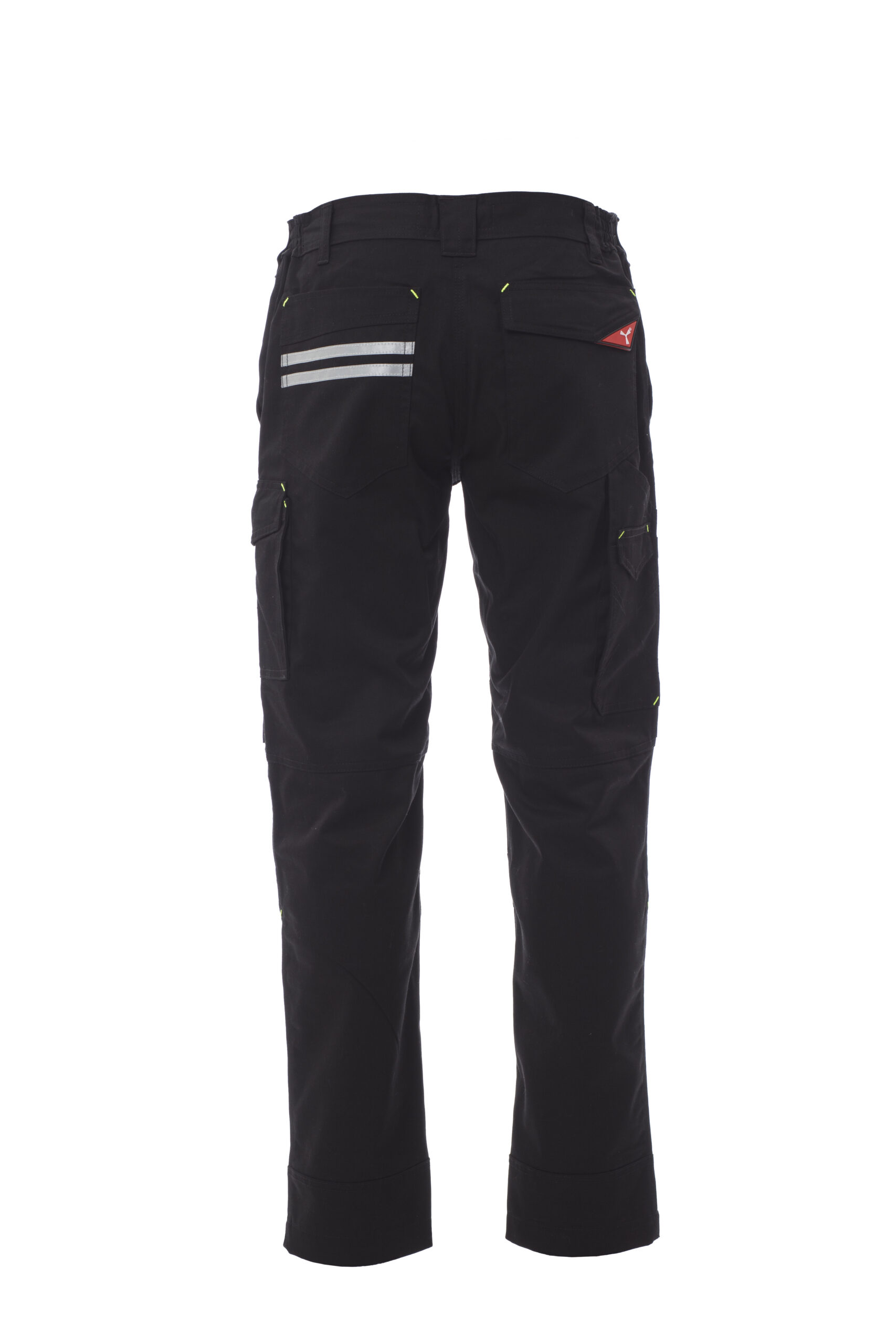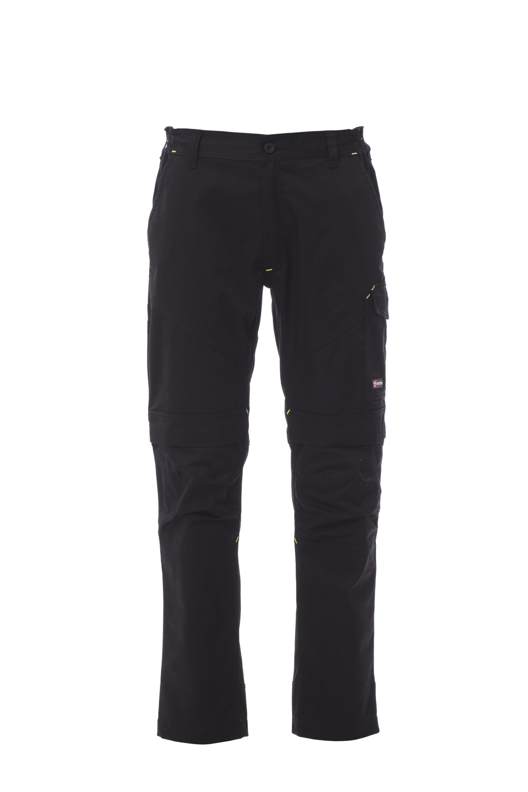 Pantalón unisex, multiestación con bolsillos para rodilleras, con elásticos laterales y trabillas en la cintura, cierre con cremallera y botón de plástico, dos bolsillos delanteros de corte clásico, bolsillo lateral con LOCK SYSTEM, soporte para metro y soporte para smartphone