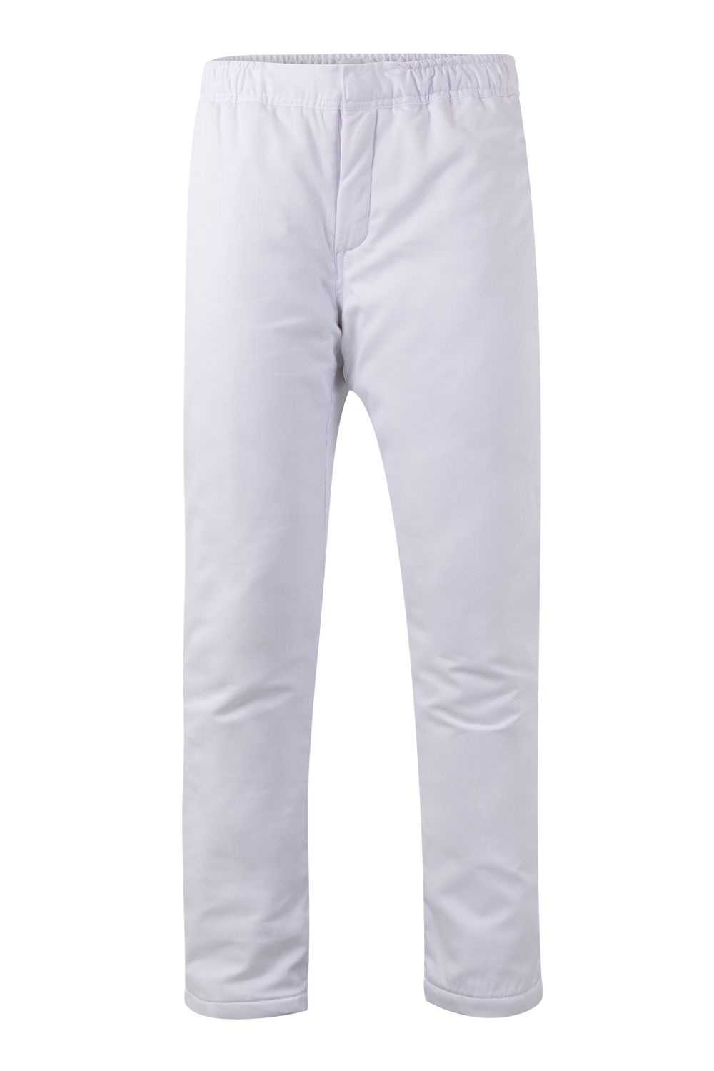 Cierre central con botones automáticos ocultos. Cinturilla elástica. Puños de canalé en el interior del bajo del pantalón. Doble costura de seguridad. Un bolsillo: 1 bolsillo interior con velcro, cosido en la parte delantera de la cinturilla