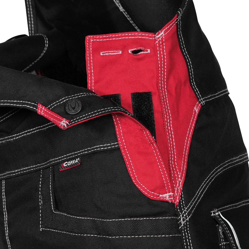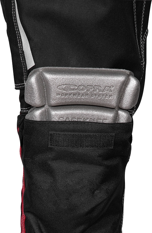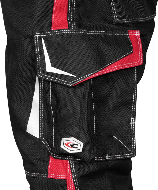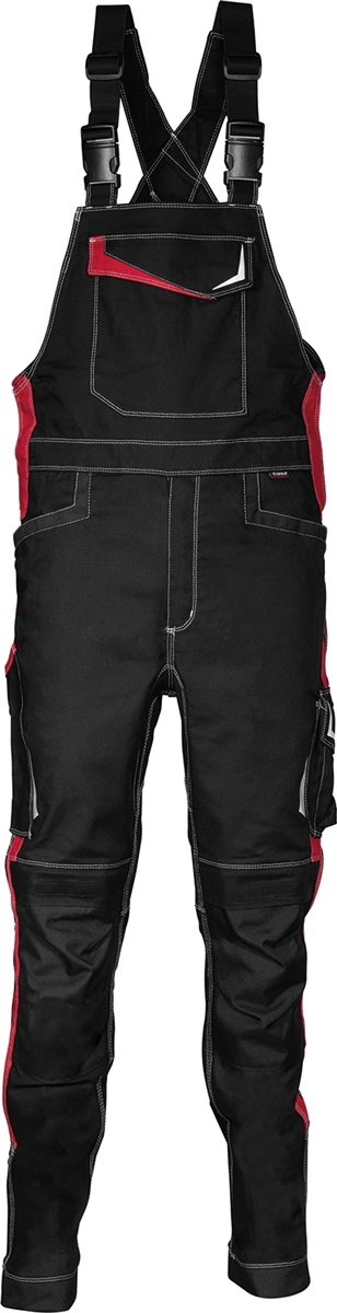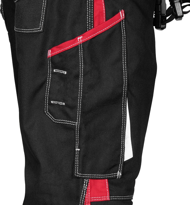 2 amplios bolsillos delanteros, amplio bolsillo delantero con tapeta, tirantes ajustables con cierre al enganche, tiro reforzado, doble bolsillo trasero con tapeta, insertos resistentes a la abrasión en el fondo de la pierna, insertos resistentes a la abrasión de los bolsillos posteriores, insertos resistentes a la abrasión bolsillos anteriores, insertos reflectantes 3M™ SCOTCHLITE™ Reflective Material – 8725 Silver Fabric, pasador portamartillo ajustable, corte ergonómico de las piernas y rodillas, bolsillo lateral, bolsillo portamóvil, bolsillo porta metro, bolsillo para rodilleras en nylon con posición ajustable, tejido elástico, cremallera YKK®. Composición: 64% algodón – 34% poliéster – 2% elastán + insertos resistentes a la abrasión en 100% nylon. Gramaje: 250 g/m².
