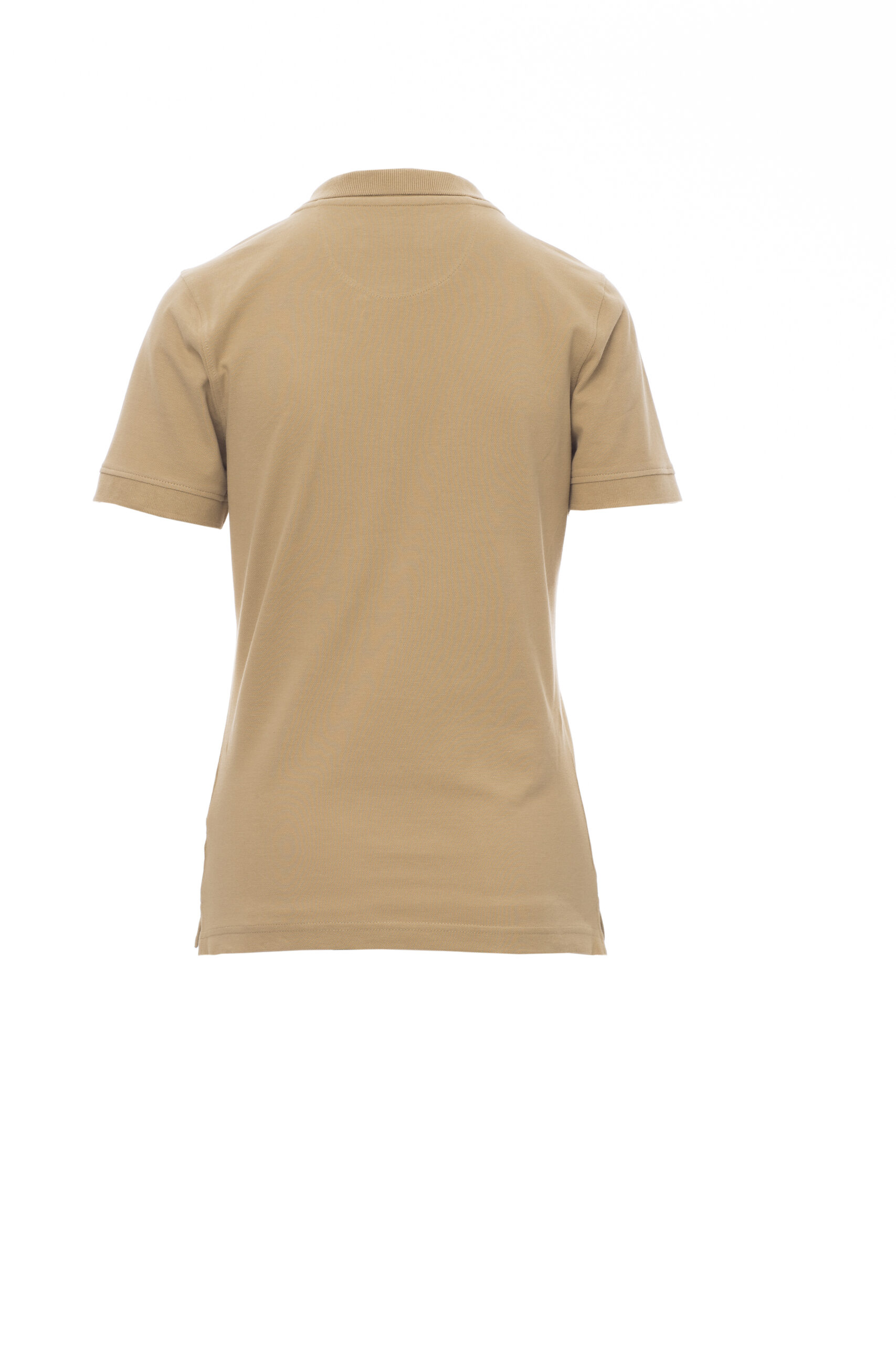 Camiseta polo ceñida de manga corta para mujer, con 4 botones efecto nácar a juego, cuello y extremo de las mangas elásticos, ventilaciones laterales, pespunte oculto en cuello con cinta de contraste, costuras elásticas, cinta de refuerzo lateral, cinta en la parte interior del cuello. Composición: 100 % Algodón. Gramaje: 200 GR/MQ.