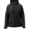 WP 8000 mm H₂O, WVT 5000 g/m² 24h. Soft-shell acolchado de hombre, cierre de cremallera con cursor de metal con sistema de bloqueo semiautomático y tirador personalizado. Capucha fija ajustable con cordón. Puños elásticos, ajustables con velcro. Dos bolsillos laterales y un bolsillo en el pecho, cerrados con cremallera. Tiradores fluorescentes. Dos bolsillos interiores, uno contorneado con cremallera y otro para tableta cerrado con velcro. Bajo ajustable con topes personalizados.