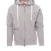 Sudadera ceñida con capucha para mujer con cremallera SBS completa de plástico cubierta y doble tirador metálico, capucha con doble costura y cordón blanco con puntadas y aros metálicos de contraste, mangas ranglán, bolsillos canguro, pequeño bolsillo con cremallera, puños y dobladillo elásticos, costuras reforzadas. Composición: 70 % Algodón + 30 % Poliéster. Gramaje: 300 GR/MQ