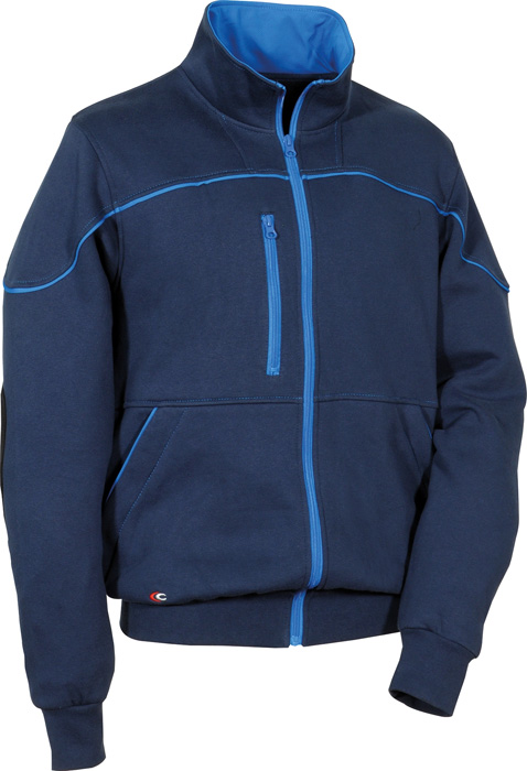 1 bolsillo en el pecho, 2 amplios bolsillos bajo de la prenda con cremallera, abertura central con cremallera, bajo de la prenda y mangas elásticas, codos reforzados. Composición: 100% algodón. Gramaje: 380 g/m².