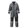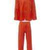 Traje de lluvia, con recubrimiento de PVC, compuesto por chaqueta con cremallera, capucha plegable en el cuello, mangas rectas con elástico en los puños, malla en la espalda. Pantalón con cintura elástica y dos bolsillos abiertos. Bandas retrorreflectantes en los brazos, delantero y espalda de la chaqueta y en el bajo de los pantalones. Empaquetado individual con cremallera. Composición: 100 % Poliéster recubierto. Gramaje: 180 GR/MQ
