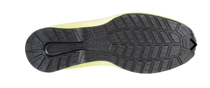 Empeine: tejido de alta tenacidad, repelente al agua, hecho en parte con hilos ecológicos. Forro Interior: SANY-DRY® 100% poliéster, tridimensional, transpirable, absorbente y deabsorbente, antiabrasión. Plantilla: FOOT-PAD, extremadamente suave y cómoda. Gracias al poliuretano de muy baja densidad, se auto modela, permitiendo una correcta distribución del peso corporal y dando una sensación de confort inmediata. La elevada capacidad de absorción de impactos se logra con un material de alta resiliencia y un perfecto espesamiento en el centro del tacón. Puntera de Protección: ALUMINIUM 200 J. Lámina: no metálica APT PLUS – Zero Perforation. Suela: poliuretano/TPU. Horma: 11 Mondopoint