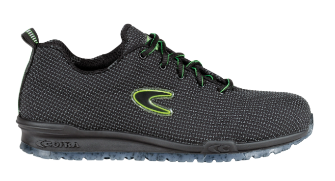 Empeine: TECHSHELL, tejido innovador extremadamente tenaz, resistente a la abrasión y a los tirones, hidrófugo y transpirable. Forro Interior: SANY-DRY® 100% poliéster, tridimensional, transpirable, absorbente y deabsorbente, antiabrasión. Plantilla: FOOT-PAD, extremadamente suave y cómoda. Gracias al poliuretano de muy baja densidad, se auto modela, permitiendo una correcta distribución del peso corporal y dando una sensación de confort inmediata. La elevada capacidad de absorción de impactos se logra con un material de alta resiliencia y un perfecto espesamiento en el centro del tacón. Puntera de Protección: ALUMINIUM 200 J. Lámina: no metálica APT PLUS – Zero Perforation. Suela: poliuretano/TPU con gránulos de nitrilo reciclado. Horma: 11 Mondopoint