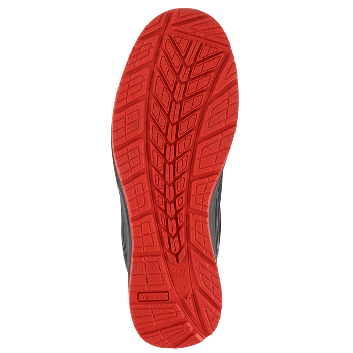 Zapatilla de seguridad Flex Air S1P, con plantilla antiperforación textil y puntera de fibra de vidrio ultraligera en rejilla gris de alta transpirabilidad con detalles rojos. Incluye la nueva suela Bellota FLEX que se adapta a cualquier postura y la plantilla Confort+ para conseguir la mayor comodidad. Pensada para trabajos que necesiten que el pie respire y la mayor ligereza.