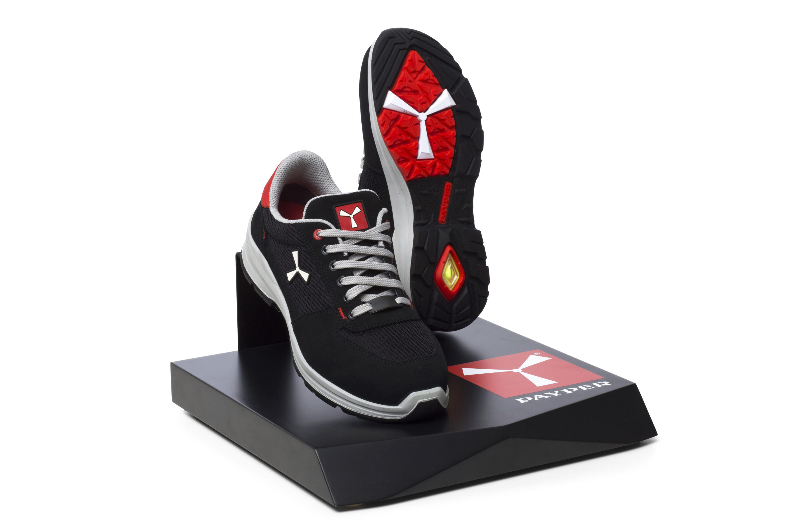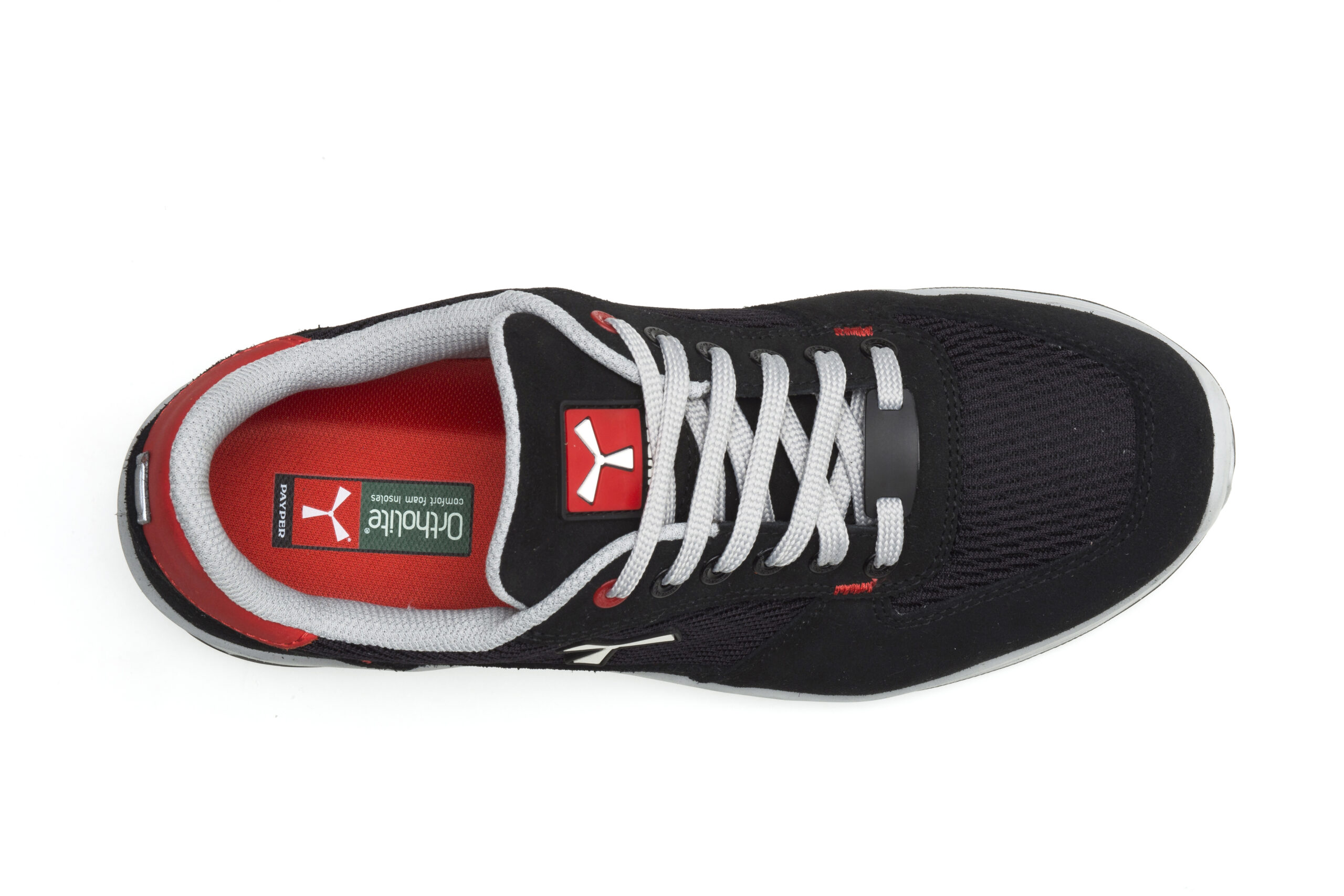 Zapato de seguridad antiestático bajo de hombre, pala de serraje repelente al agua con inserciones de tejido técnico transpirable, forro interior (en toda la superficie interna) transpirable y resistente a la abrasión, 6+6 ojales sin metal, inserción reflectante en el protector de tacón, puntera de aluminio moldeado a presión, plantilla extraíble Ortholite X40 016, plantilla de lámina textil certificada antiperforación, cambrillón antitorsión, base de la puntera con forma de herradura, entresuela de poliuretano ultraligero, amortiguador MASTER BALANCE en PU poliéter de alta tenacidad y densidad equilibrada, suela XTRAIL GRIP en TPU con protector de tacón y de punta.